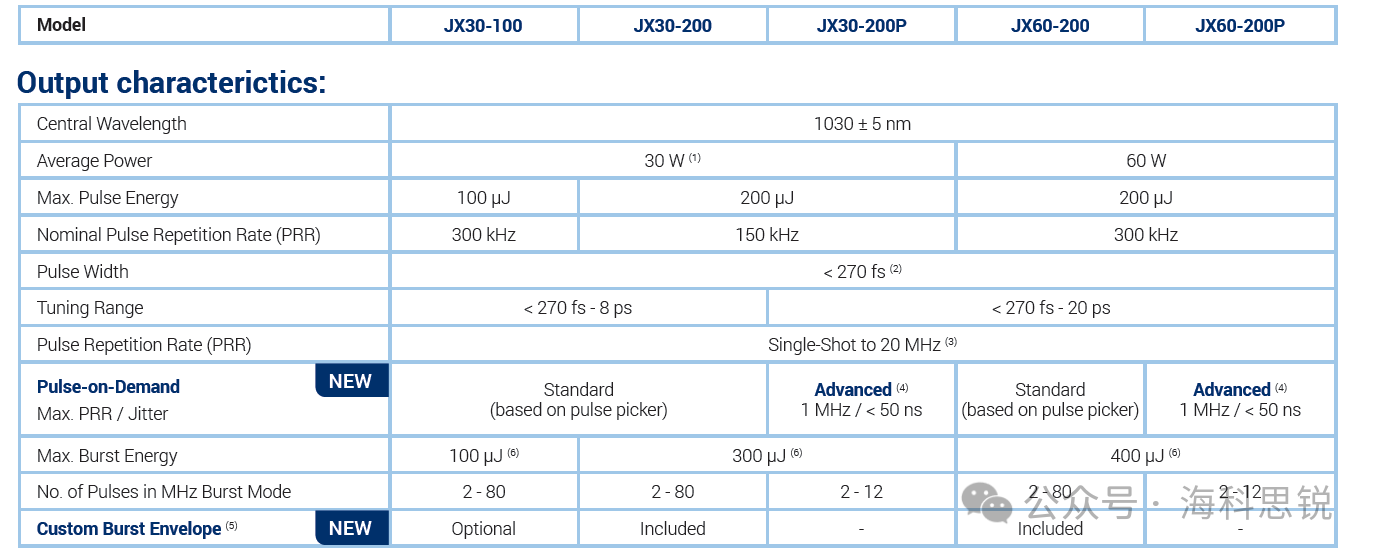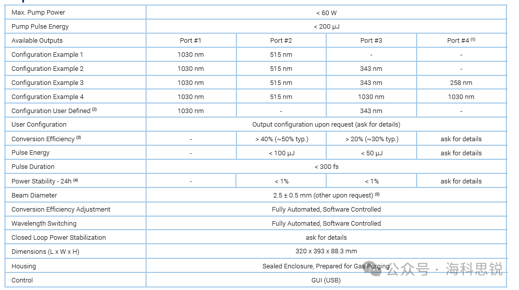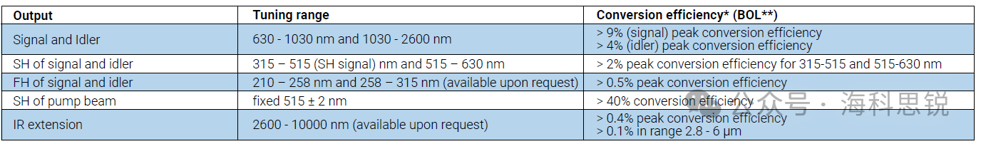 ♦高转换效率和短脉冲持续时间 < 300 fs