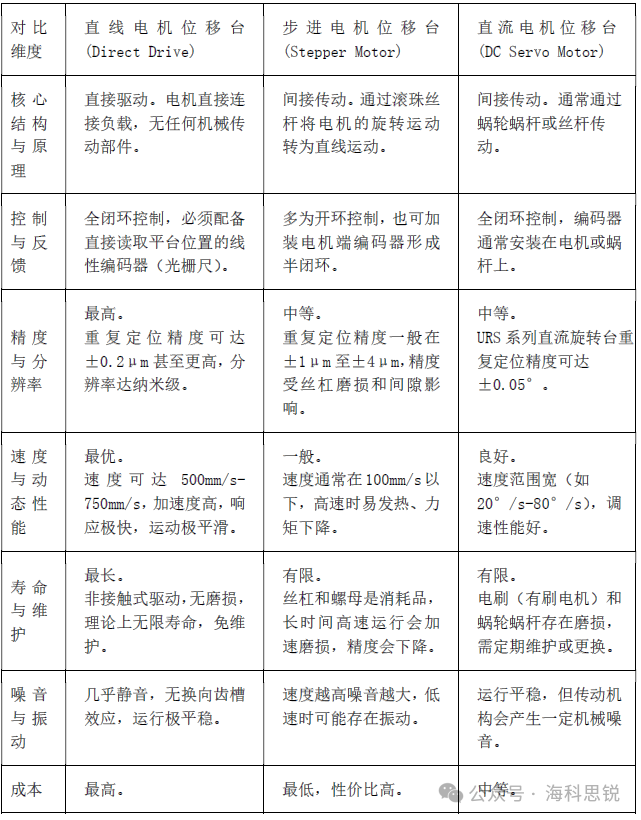 直驱电机、步进电机和直流电机三大主流电动位移台全方位对比